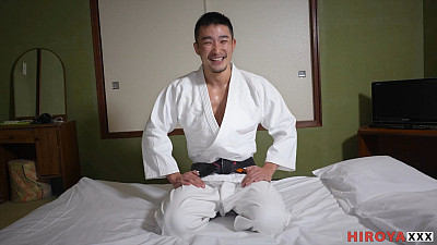 Hiroya loves playing dress-up before sex, and with a real judo guy like Ryu, he's just about leaking precum at the thought.Once Ryu pulls on the starched white gear over his beautiful tanned body, they chat a bit to cool things down before their arousal heats up like a bonfire. Manly Ryu loves taking cock, and eagerly spreads his legs wide open for Hiroya's big tool. Then he rides that cock and groans as Hiroya speeds up the thrusts and sends him into overdrive. He gets the cock he needed so badly, drilled straight up into his hairy hole, and a hot steaming splatter of creamy love juice over his tight, muscled body.
